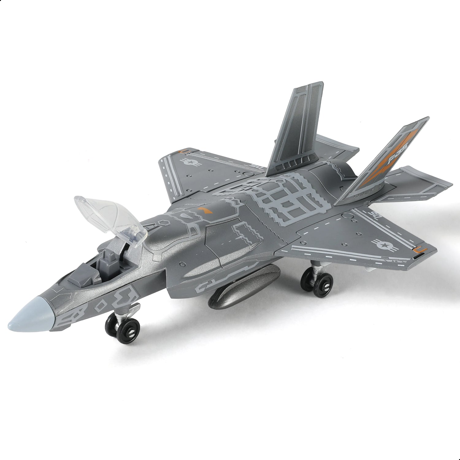 【INTERACTIVE MOVABLE FEATURES】 Experience realism in motion! This F-35 model features a functional cockpit canopy that opens, along with rotatable landing wheels. These interactive elements not only make the assembly process more engaging but also provide a dynamic, life-like display for your collection.
