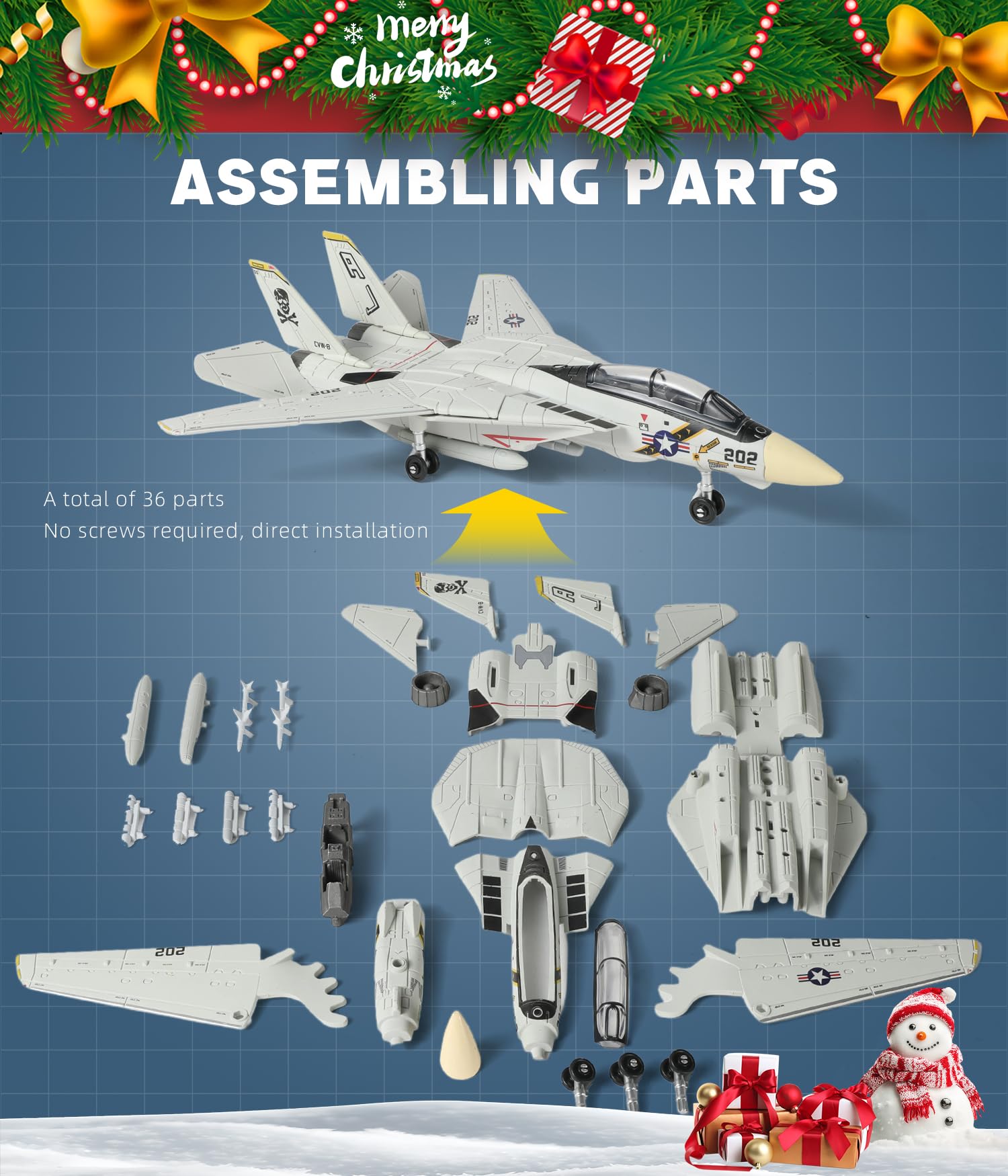- [Easy-to-use assembly experience]The parts of the F14 fighter model kit are carefully designed and made with good compatibility and fit, and can be assembled without special tools. It comes with an assembly step-by-step diagram, so even beginners can easily get started. At the same time, the assembled fighter model is also movable, the swept wings can rotate, the cabin can be opened, and the fighter wheels can also move, bringing you a more vivid display effect.